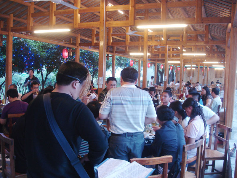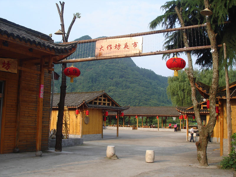 張家界武陵源大作坊美食城是一家集垂釣休閑,特色餐飲,夜市為一體的大型風味美食城!位于風景如畫的武陵源風景區(qū)區(qū)政府所在地,占地3000多平方米,可同時容納400多人就餐。這里也是景區(qū)內匯集土家美食,苗家美食的第一坊!美食城按純木四合院建造,內設酒作坊,豆腐作坊,臘味作坊,糍粑作坊,有垂釣區(qū),燒烤區(qū),菜品自助區(qū),客人廚藝展示區(qū),農產品展銷區(qū)等。酒作坊內聘請了民間煮酒大師現(xiàn)場煮酒,你有機會可以現(xiàn)場吃到熱乎乎的頭鍋酒,酒坊內有純米酒,包谷燒,高梁酒,有用野果泡制的各種果酒---燈籠酒,楊梅酒,彌猴桃酒等,更有特色的是把高梁酒放在正在生長的楠竹內,用竹內竹膜的香味把酒增香,十二天就把竹子砍下再放養(yǎng)三天就好了,客人要吃現(xiàn)場鋸竹筒酒吃!豆腐坊也是聘請民間老農現(xiàn)場用自制的石磨做豆腐,在這里你可以吃到真正有豆香味的原汁原味的石磨豆腐,和渣,菜豆腐,豆腐腦等豆制品!臘味作坊里有冬天用各種香料熏制的正宗湘西藏臘肉,臘豬頭肉,臘香腸,臘豬腳,各種臘制品臘野味等。糍粑坊每天在晚上人多用餐高峰時現(xiàn)場打滋粑,客人也可以自己參與打糍粑這個快樂的過程,想受過年時才有的熱鬧情景!在垂釣區(qū)里我們放養(yǎng)有很多野生魚類,有時間了你可以來這里休閑垂釣,得到的魚我們就會給你現(xiàn)場加工,有清沌的,紅燒的,青椒燜的,酸湯的,都很好吃哦。燒烤區(qū)里,我們高薪聘請了燒烤大師為你現(xiàn)場制做,你也可以自己動手,有烤羊排羊腿,各種串烤,烤全魚,烤全兔等,還有各種鐵板烤可以自己炒著吃!菜品自己選區(qū)里有各種山野菜,壇子菜,干菜,臘味等,有各種鮮活的魚類,河蛘,水魚,田螺,龍蝦等,有各種農家的土雞土鴨等,有各種鮮活的野味等你來享受美味呢!客人廚藝展示區(qū)里老板特設制地幾口大鍋, 很有特色的是, 你可以自己親自下廚, 酸甜苦辣任您自由調配 。 煮好了, 大家就圍著這“灶臺”合一的飯桌享受張家界的美食了。(張家界的三下鍋是很有特色的,是邊煮邊吃的, 只是這“三下鍋”是“大型三下鍋”而已。到張家界旅游,吃張家界的“三下鍋”是一種獨有的旅游體驗,到大作坊吃“大型三下鍋”,則更將會為你的旅程增添一份難得的回味。農產品展銷區(qū)里展示著當?shù)鼗蛳嫖鞯貐^(qū)最暢銷的農產品食品:正宗湘西鄉(xiāng)里臘肉,香腸,各種臘制品,洗車河霉豆腐,靈潔牌剁椒辣醬系列,菌油,正宗茶籽油,苗家酸湯,鄉(xiāng)里正宗葛粉,大壇湘西五糧液,竹簡敲敲酒,張家界茅巖霉茶,野生蜂蜜,高山葛粉,張家界第一山珍巖耳,葛根片等等! 武陵源大作坊美食城是武陵源景區(qū)規(guī)模最大,品種最多,環(huán)境最優(yōu)雅的休閑美食城。有各式小炒火鍋,岳陽特色燒烤系列,鐵板燒系列,鴨霸王系列,潮州特色砂鍋粥系列,涼菜醬菜系列,湘西地方特色小吃系列等。美食城整晚邀請著名的流浪歌手阿彪為你獻歌助興,并可同阿彪歌聲互動,在這里你可以放下一天的疲勞,拋開一身鎖事,度過美好的每一分鐘......武陵源夜市大作坊,是張家界旅游體驗的重要一站,它受到如此多的游客的熱捧,是因為,在這里能釋懷,是因為在這里,能體驗張家界旅游的文化內涵, 是因為在這里,能給你一個自由的空間......