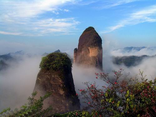 | 莨山,位于湖南省新寧縣境內(nèi)。南與桂林相連,北與張家界呼應,是國內(nèi)最為典型的丹霞地貌風景區(qū),是國家重點風景名勝區(qū),又是國家地質(zhì)公園,總面積108平方公里,轄紫霞峒、 扶夷江、駱駝峰、牛鼻寨、八角寨五大景區(qū),地質(zhì)結(jié)構(gòu)奇特,山、水、林、洞渾然一體。境內(nèi)有形神兼?zhèn)涞膶④娛⑽┟钗┬さ鸟橊劮濉⒐砀窆さ?天下第一巷"、地造天設(shè)的鯨魚鬧海、氣勢磅礴堪稱亞洲第一的天生橋、高聳入云而又十分逼真的辣椒峰,這便是嘆為觀止的莨山六絕,這是大自然對莨山的恩賜,每一絕都舉世無雙。莨山還生長繁衍著銀杉、珙桐、華南虎、云豹、靈貓、大鯢等珍稀動植物,也為莨山的天然景色增添了無限靈動與生氣。這里出土有10萬年前的獼猴頭骨化石,有4500年前的新石器文化遺址,有清化農(nóng)民起義的寨堡,有晚清重臣劉坤一、劉長佑、江忠源的宗祠、墓葬,有異彩紛呈的民族風情,有膾炙人口的華采詩賦,明代縣人陳永猷留下了"夫夷(新寧古稱)勝景天成就,攝杖歸來入夢頻"的美譽,著名詩人艾青留下了"桂林山水甲天下,莨山山水賽桂林"的喟嘆。