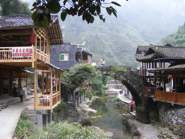 古老的苗寨:矮寨的德夯非常有名,它是一個典型的苗族村寨,湘渝公路最險(xiǎn)的一段就經(jīng)過這里,在水平的100米之內(nèi),公路共繞了13個彎,上升了數(shù)百米,如果你來這里,勇氣可以得到很好的鍛煉。在矮寨以西10公里的地方,有著名的流紗瀑布,據(jù)說該瀑布的落差達(dá)216米,雄踞全國之最。由于峽谷的風(fēng)很大,使得水流左右飄舞,“流紗”二字恰好能描繪出它的特點(diǎn)。