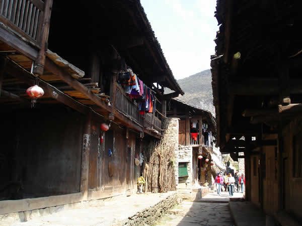 苦竹寨圖片 流水悠悠,人事蒼桑。到了近代,由于陸上交通的迅速崛起,水上交通漸漸衰落,小鎮(zhèn)慢慢地被人遺忘在峽谷之中了。失去了往日繁華的小鎮(zhèn),并沒有失去多少古色古香的本來面目,使我們今天能通過這殘缺的街道、建筑、店鋪,去感受她逝去的風采。古老的風火墻、底矮的吊腳樓,向游人展示著土家人的聰明才智,一條條青石板、一聲聲咚咚喹,在訴說著古寨子過去的輝煌。