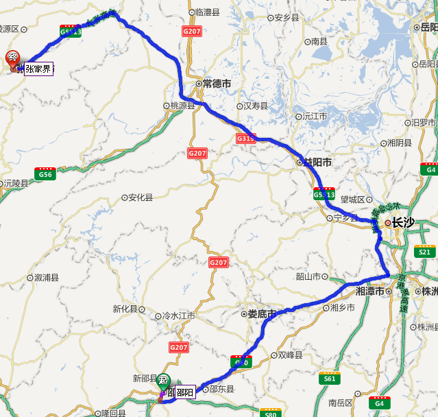 邵陽(yáng)市到張家界自駕車(chē)路線圖