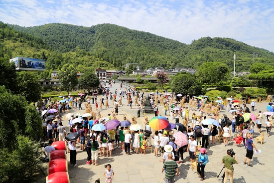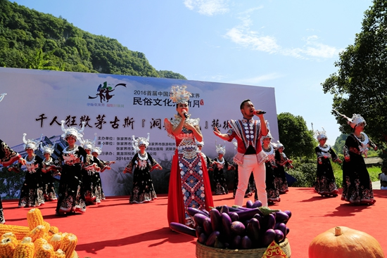 7月29日上午9點(diǎn)30分,由張家界市人民政府主辦,張家界市委宣傳部、市旅游和外事僑務(wù)委員會(huì)、市文體廣電新聞出版局、武陵源區(qū)人民政府承辦,黃龍洞景區(qū)協(xié)辦的“絕版張家界,最炫民族風(fēng)”張家界民俗活動(dòng)月第三場(chǎng)活動(dòng)在黃龍洞景區(qū)啟動(dòng)。現(xiàn)場(chǎng)以土家人慶祝豐收的鼓舞拉開(kāi)序幕,土家鼓舞歡悅的節(jié)奏,夸張的舞姿開(kāi)場(chǎng)就吸引了幾千游人和當(dāng)?shù)厝擞^看。草根夫妻檔歌手,張家界“山水組合許勇、舒維亮麗的服飾,野性的嗓音……”以一首《我在高山唱》歌曲,征服現(xiàn)場(chǎng)游客,贏得雷鳴般的叫好聲。
